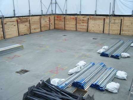 ↑単管パイプで型枠を支えていますが、これはコンクリートを打設した際に