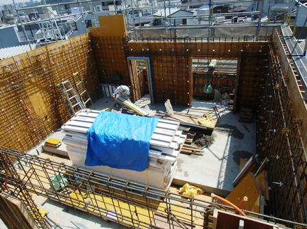 4階の躯体工事も終わり、コンクリートの打設状況です