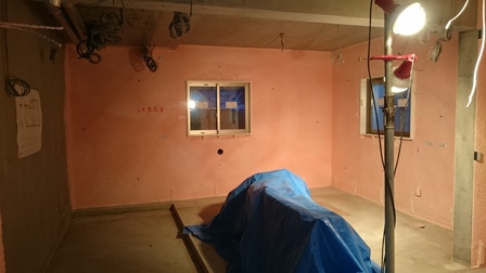 一方、1階では断熱材の吹付が完了しました(・_・ )ゞ