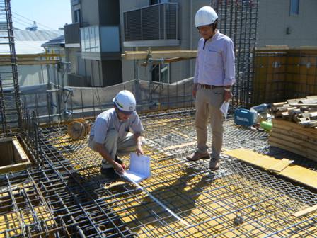 配筋図に基づいて、正しく鉄筋が配置されているかの確認です。