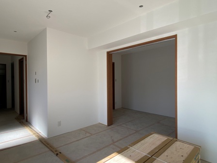 ☆中野区上高田の賃貸マンション|足場解体・3階クロス貼り・2階フローリング張り・エントランス工事