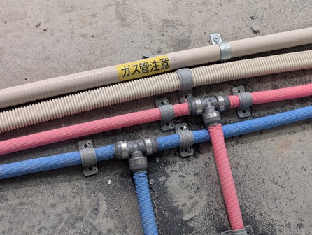 青い管が【給湯管(水を通す)】とっております(^○^)♪