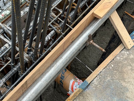 このオレンジ色は、塗料で塗られており、コンクリートが固まった後にはがしやすいようになっているのですよ。