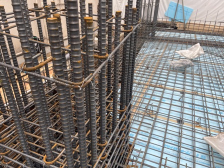 基礎配筋工事の様子です。