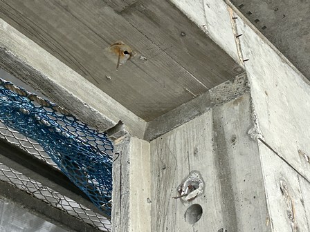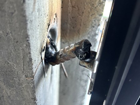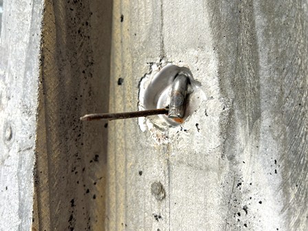 ▲サッシアンカーと鉄筋(溶接棒)を溶接した後の様子。