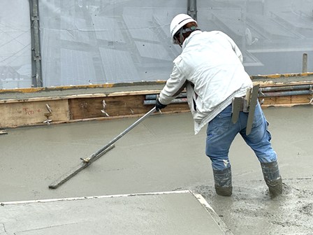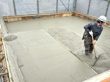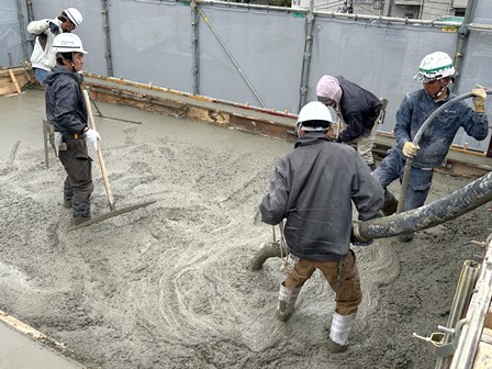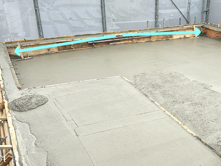 こちらはある程度打設が進み、均しの作業が行われていたときの写真です。