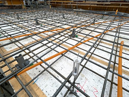 打設されるスラブの上をよく見ると、