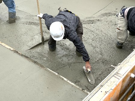 ▲鏝で生コンを均す職人さん。