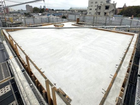 上棟(※)まで「配筋工事・型枠の建て込み」→「コンクリート打設」を繰り返してきた当物件。