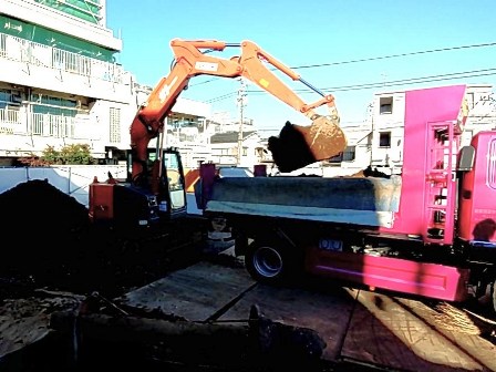▲ダンプカーに残土を積む様子。
