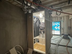 さて、内装工事に転がし配管の次に行われるのはユニットバス設置です。