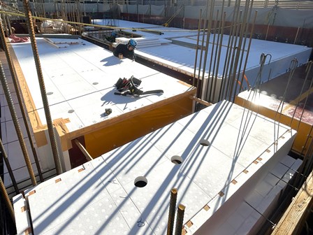 この後にスラブの上へ配筋を行い=スラブ配筋、コンクリート打設へと進んでいく流れとなります。