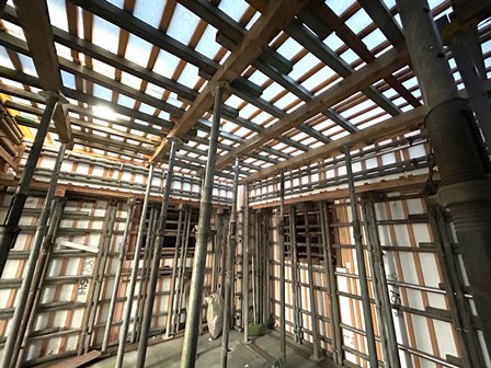 上に打設したコンクリートが十分な強度まで硬化した後は取り外されます。