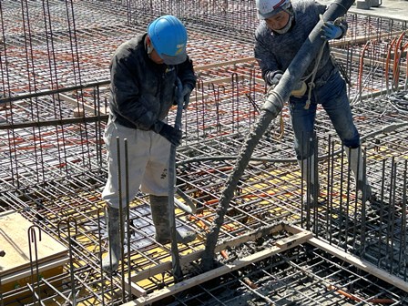 前回は配筋工事・型枠の建て込みを行ったので、次はコンクリート打設となります。