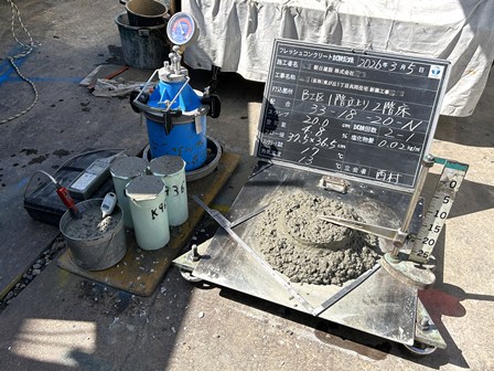 そのすぐ近くでコンクリート試験が行われていました。