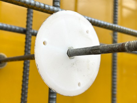 外側型枠と内側型枠(=断熱型枠材)の間を一定に保つために設置されます。