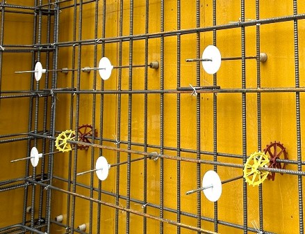 コンクリート壁の厚みが場所によって異なるのを防ぐために、型枠間の距離を一定に保つ必要があるんです!