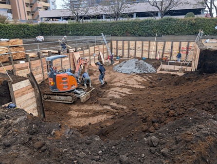 前回は、穴を掘るための壁を作る工事を行いました。