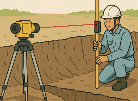 ちなみに、深さは「オートレベル」という三脚の機械を使って簡単に測ることができます。