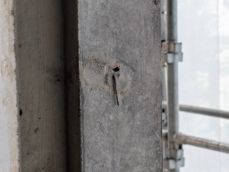 あらかじめコンクリートに埋められた金具が見えています。この金具と