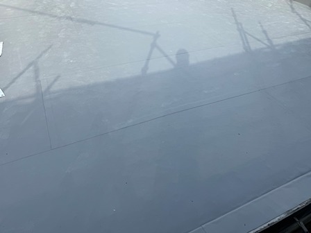 塩ビを使ったシート防水は耐久年数が長く、広い面積にも施工しやすいというメリットがあります〇