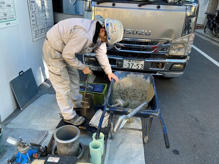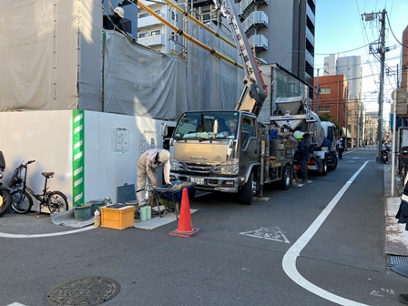 それは、生コンクリートの品質試験です!