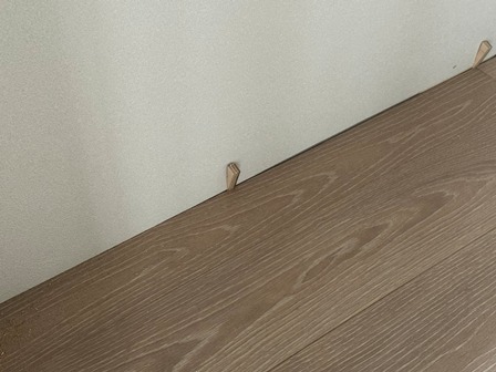 さて…こちらの写真、お部屋の角に三角形の木材をはめていますね。