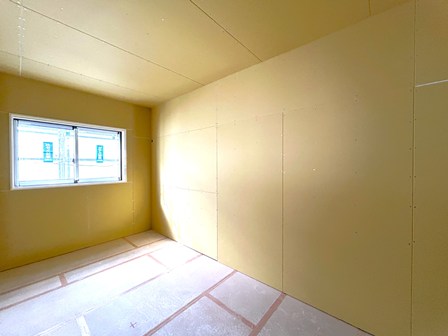 ▲ボードを張ったお部屋。ボードは天井にも張っていきます。