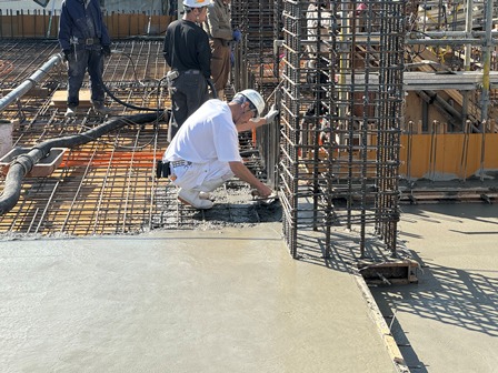 コンクリートを流した後、表面を平らに仕上げていきます。