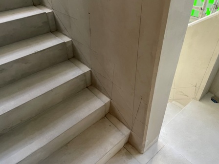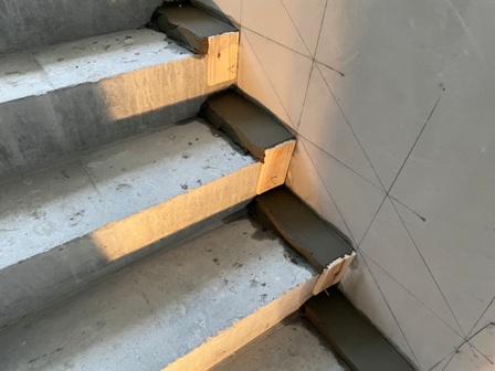 階段の左官工事を行っています。