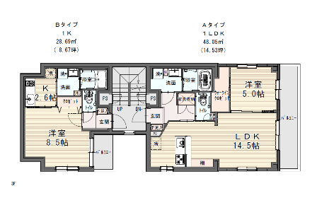 賃貸部分の間取りは1K・1DK・1LDKがございます。