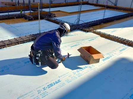 ▲チラッと見えている青い板のようなものは前回の記事で紹介した建築用断熱材です!
