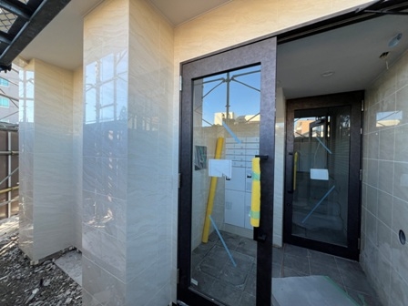 賃貸部分に上がるエントランス周りも扉が設置され、